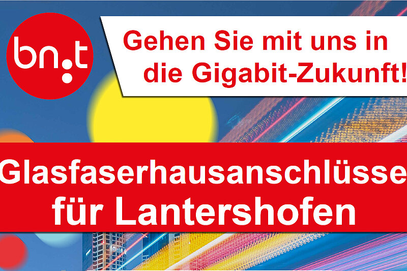 Die Firma bn:t Blatzheim Networks Telecom GmbH möchte auch in Lantershofen Leitungen und Glasfaseranschlüsse für schnelles Internet ausbauen. Die Firma teilt mit, das bis heute die erforderliche Mindestteilnehmerquote von 40% für den Glasfaserausbau Lantershofen / Cluster 1 noch nicht ganz erreicht ist. Von den knapp 300 betroffenen Haushalten aus Cluster 1 haben sich bis heute 83 angemeldet und Interesse bekundet. Die aktuell erreichte Quote liegt bei 28%. Für eine Kompletterschließung des Clusters 1 fehlen noch 37 Interessenten. Die Anmeldefrist endet am 31. Oktober 2020. Nach Fristende startet bn:t umgehend mit der aktiven Vertriebsphase. Alle Interessenten, die sich bei gemeldet haben, werden von bn:t Vertriebsbeauftragten kontaktiert und persönlich beraten. Verträge können dann abgeschlossen werden.