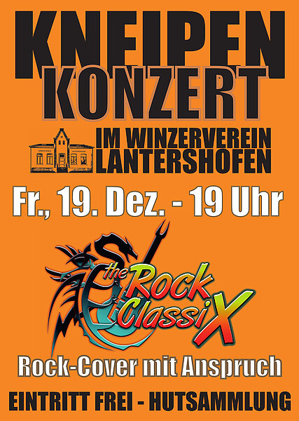 Auftakt ist dabei ein Kneipenkonzert mit der Kölner Band „The RockClassiX“ am Freitag, 19. Dezember. Ab 19 Uhr tritt die Kölner Band im Gastraum des Lantershofener Winzervereins auf. Auf dem Programm unter Motto „Weihnachtsdrink“ des Trägervereins Winzerverein stehen Klassiker der 70er und 80er Jahre. „Rock-Cover mit Anspruch“ lautet die Devise der Band, die mit Musik von Deep Purple, Led Zeppelin, Tina Turner oder ZZ Top aufwartet.